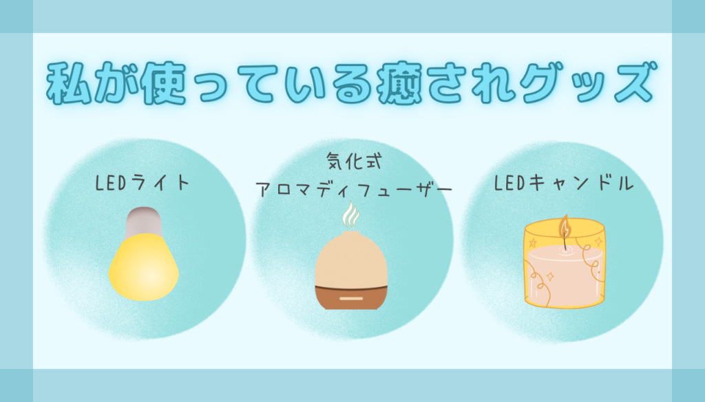 やさしい光のLEDライトや、好きな香りのアロマがあると、自然と気持ちが落ち着くんです。