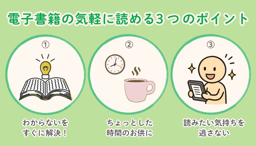 そこで今回は「電子書籍の気軽に読める3つのポイント」をご紹介します。